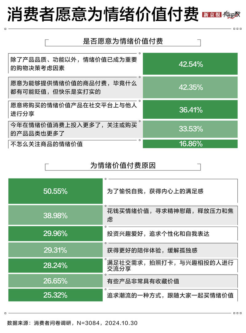 Getting inner satisfaction for pleasure is one of the main reasons why young consumers place orders for "emotional goods", and nearly 40% of consumers spend money to buy emotional value, seek spiritual comfort and release stress and anxiety.